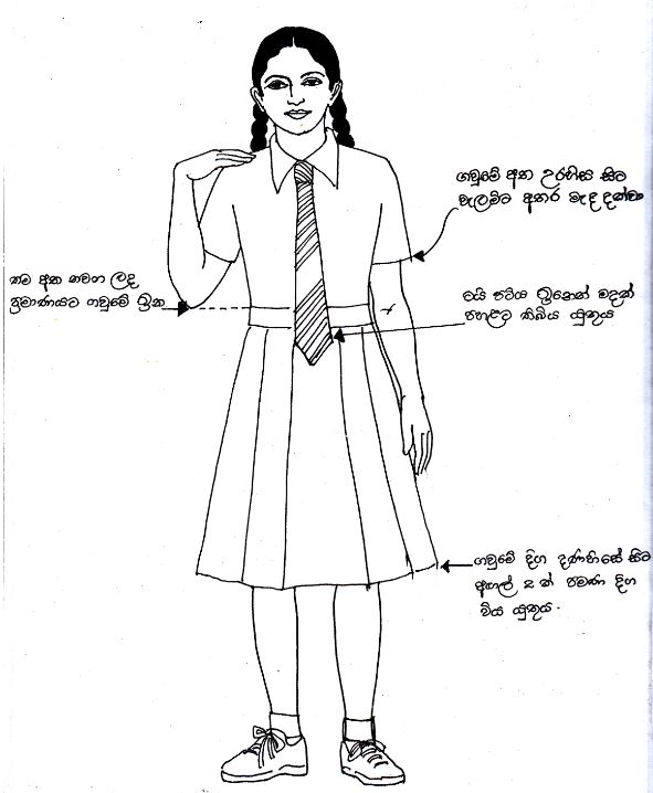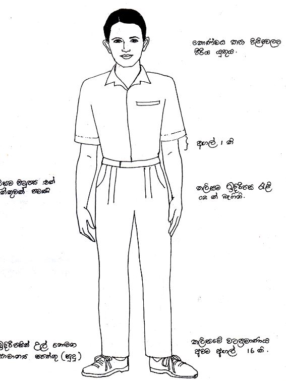 - පාසල් ලාංඡනය කමිසයේ වම් පස සාක්කුවේ කෙලවර පැලදිය යුතුය.